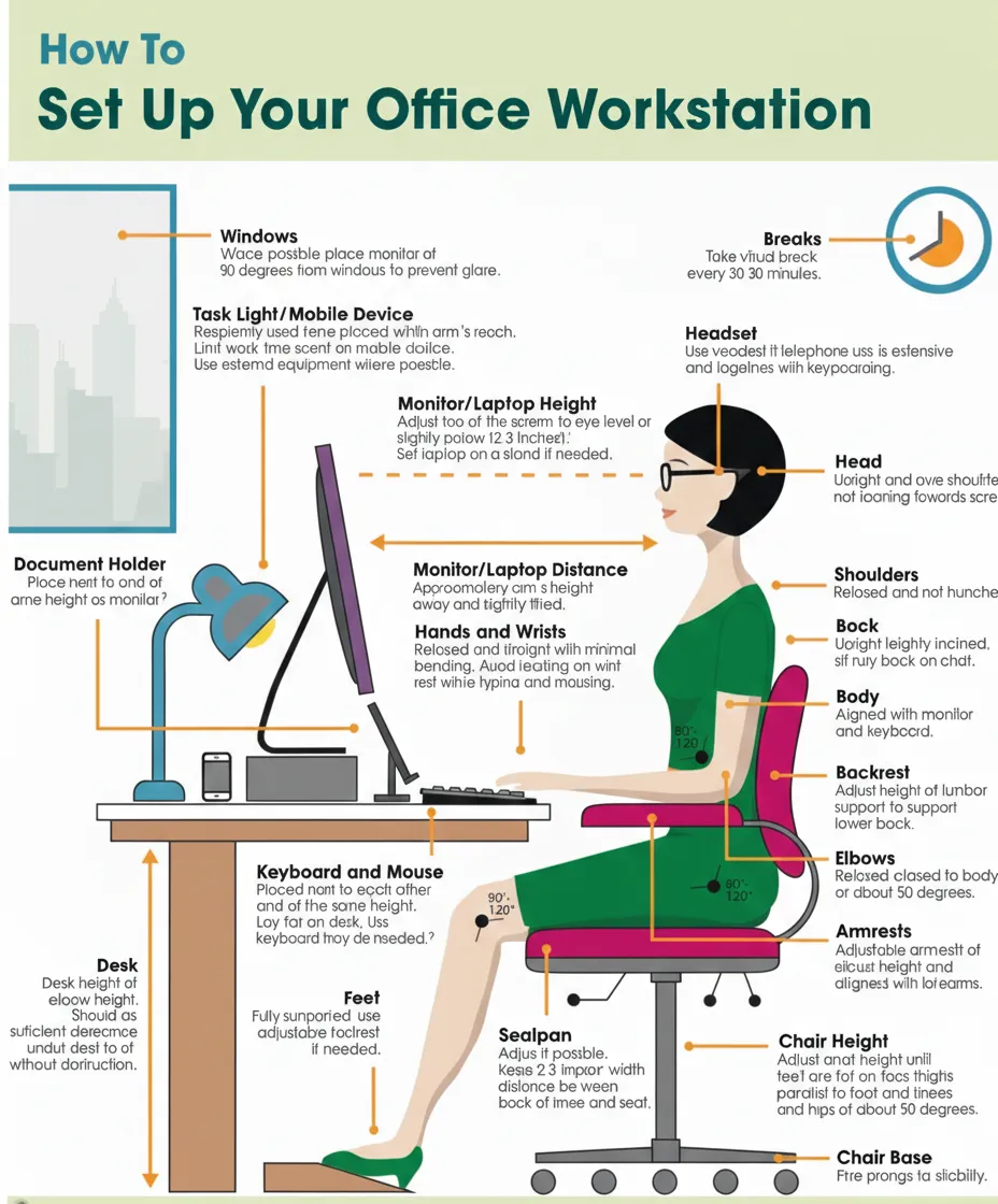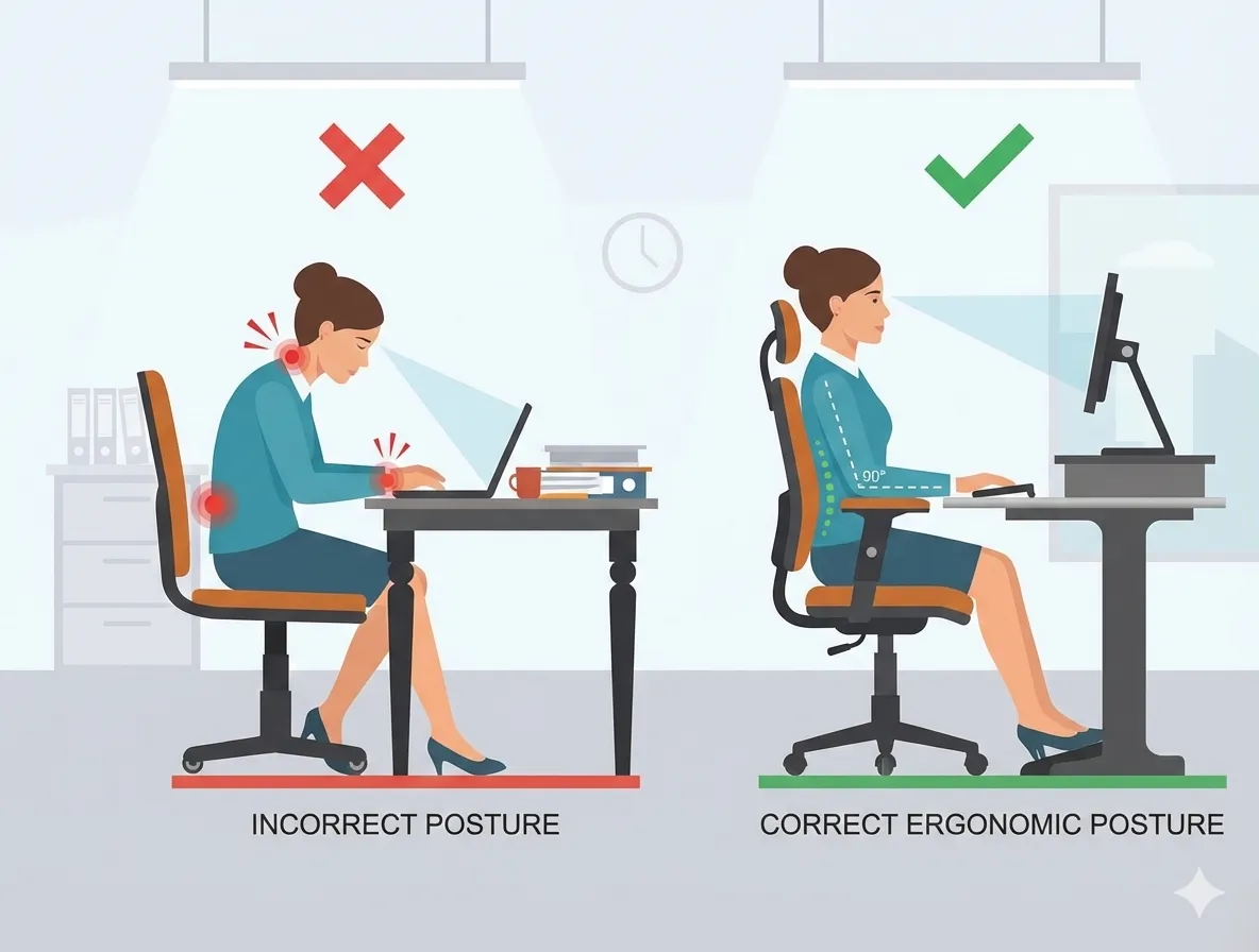 Poor workstation ergonomics, such as incorrect chair height or screen level